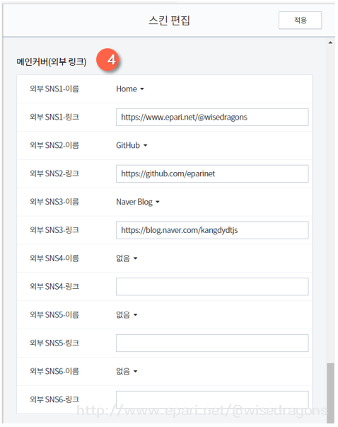티스토리 스킨 제작기-6-EPARI Base 스킨 v1.0 (화면 구성 정보)