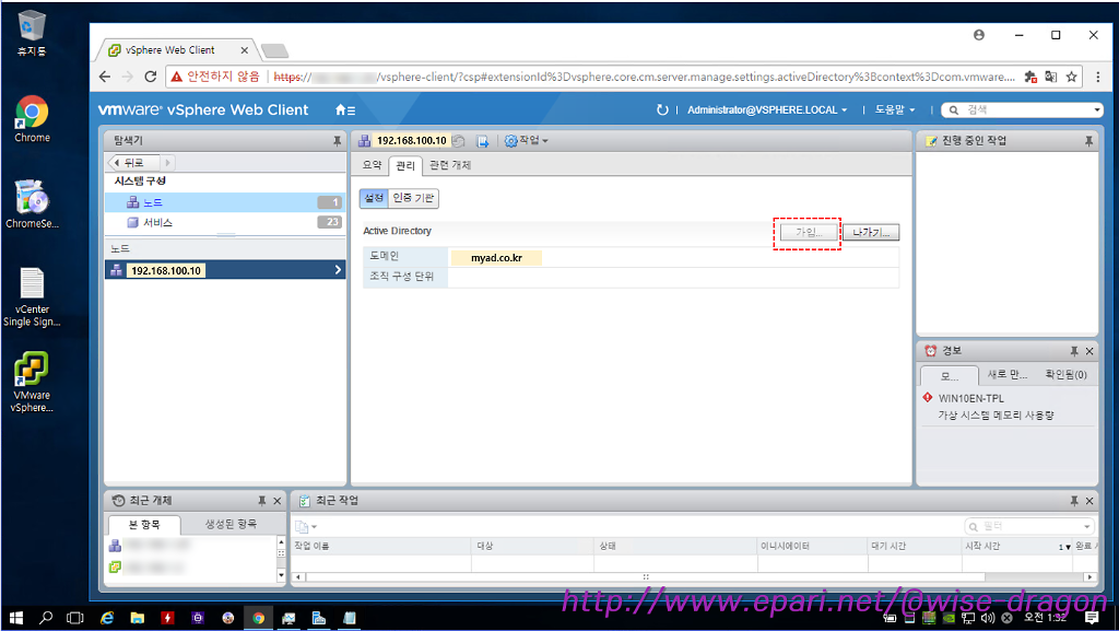 [10]. vCenter Server 설정 - Active Directory 가입 (완료)